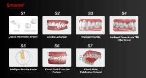 Un sistema de doble material es tan bueno como la mecánica que lo respalda. Smartee Alpha es totalmente compatible con nuestras soluciones patentadas Smartee (S1-S7), lo que garantiza que pueda manejar maloclusiones complejas, no solo casos leves.